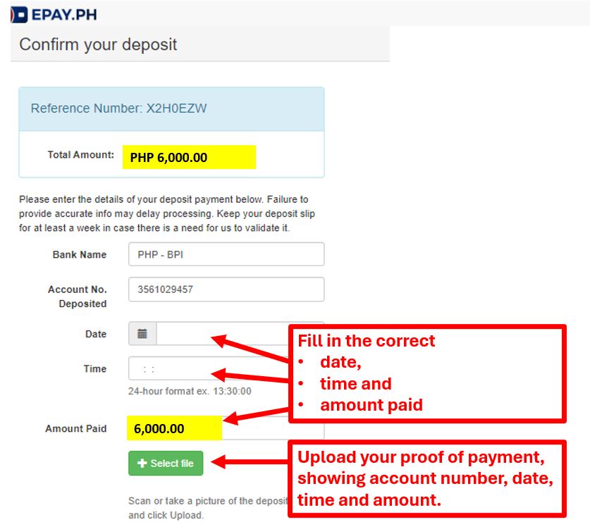 Ito ay dapat i-upload. Click lang sa epay instructions sa screen o sa email na nagsasabibng